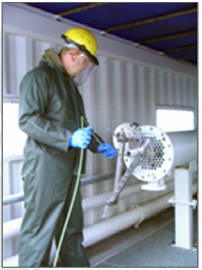 MC ITALIA, attraverso l'impiego di pompe ad altissima pressione da 1000/2500 bar con portate da 50 e 120 l/min) e speciali ugelli dedicati, è in grado di ripristinare scambiatori a fascio tubiero completamente otturati.